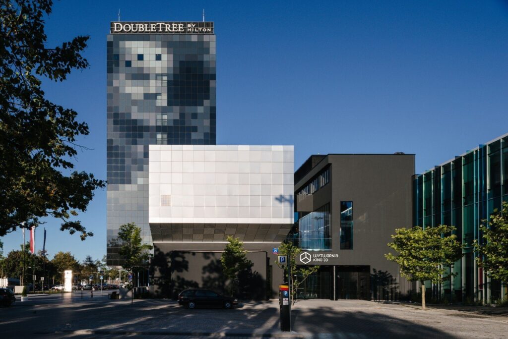 Łąkowa 29 to magiczny adres na mapie Łodzi. To właśnie tutaj, na miejscu dawnej Wytwórni Filmów Fabularnych, obok klubu muzycznego Wytwórnia powstał pierwszy w Polsce hotel marki DoubleTree by Hilton. Czterogwiazdkowy obiekt, położony w samym sercu Łodzi, łączy w sobie ducha filmowej tradycji z nowoczesnością i najwyższymi standardami obsługi. Szklana fasada z filmowym kadrem nawiązującym do odrodzenia powojennej kinematografii w Polsce oraz gorące czekoladowe ciasteczko, którym witamy naszych Gości, to dopiero początek niezapomnianej historii.