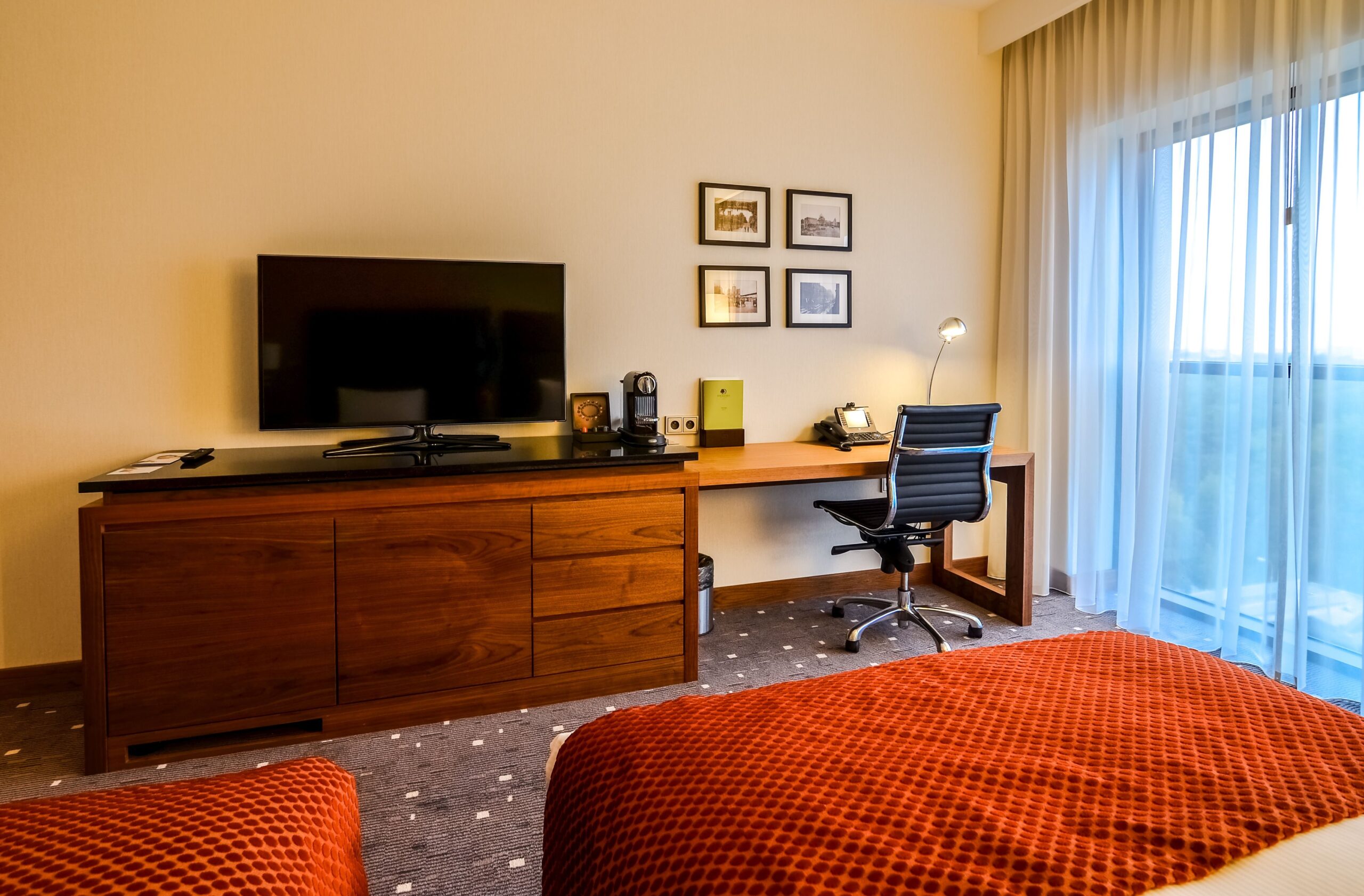 Do dyspozycji Uczestników spotkania oddajemy 150 klimatyzowanych i nowocześnie wyposażonych pokoi – do wyboru w zależności od potrzeby: pokoje 1- i 2-osobowe. We wszystkich pokojach znajduje się komfortowe łóżko Sweet Dreams, duże biurko, sejf, indywidualnie sterowana klimatyzacja oraz uchylne okna sięgające od podłogi aż po sufit. Na korytarzach hotelowych dostępne są kostkarki oraz urządzenia do czyszczenia butów. Na terenie całego obiektu można korzystać z bezpłatnego Internetu przewodowego i sieci Wi-Fi (50 Mb/s).